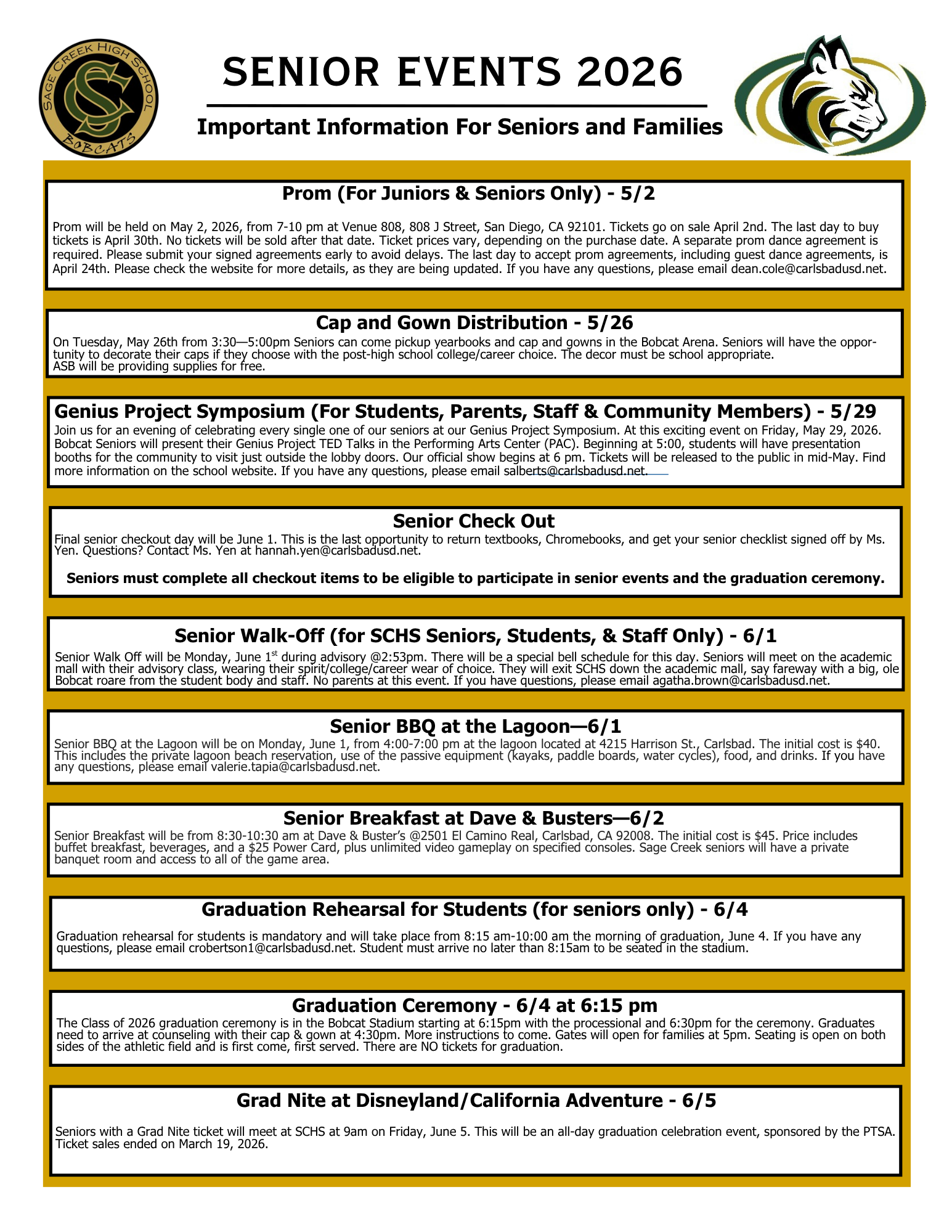 Seniors - Grad Nite is at Disneyland + California Adventure Park Hopper! Please check the list of confirmed seniors attending Grad Nite. After this week, we will not be able to add spots for this o...