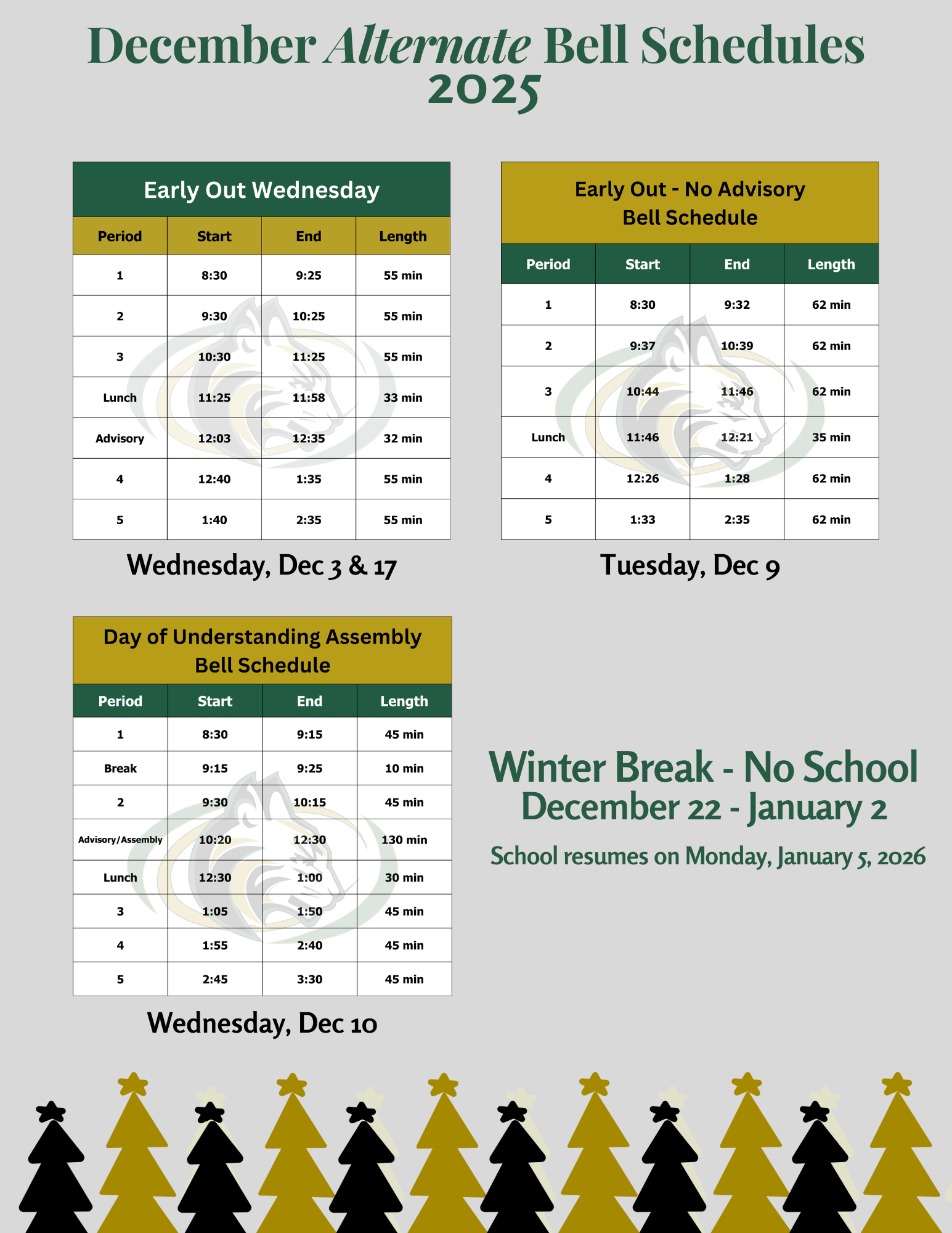 [Monday, Dec 1 at 8:18 AM]Please see the updated bell schedule.