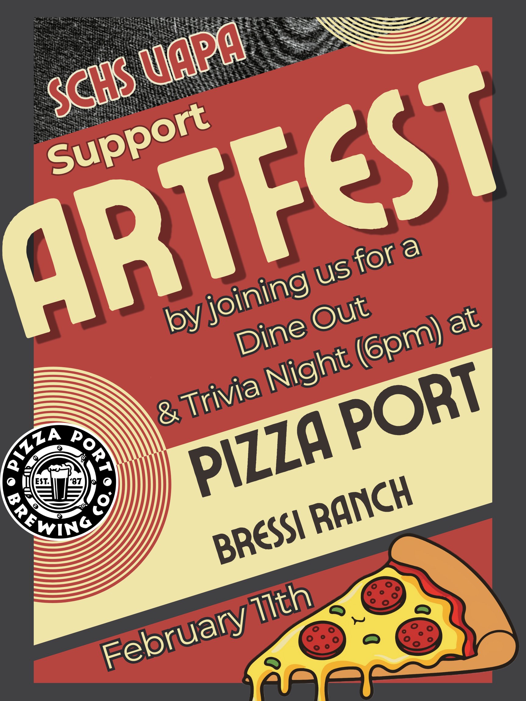 Join Sage Creek's Visual and Performing Arts Department for our Pizza Port Fundraiser this week on Wednesday, February 11th at Bressi Ranch! Come at 6 pm individually or on a team for trivia, or co...