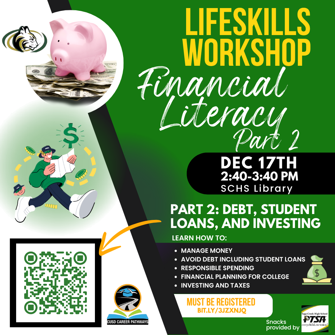 Life Skills Workshop coming up: Financial Literacy - Part 2! Join us after school for part 2 of our Financial Literacy Workshop series. Learn essential money skills - from managing your money. . .
