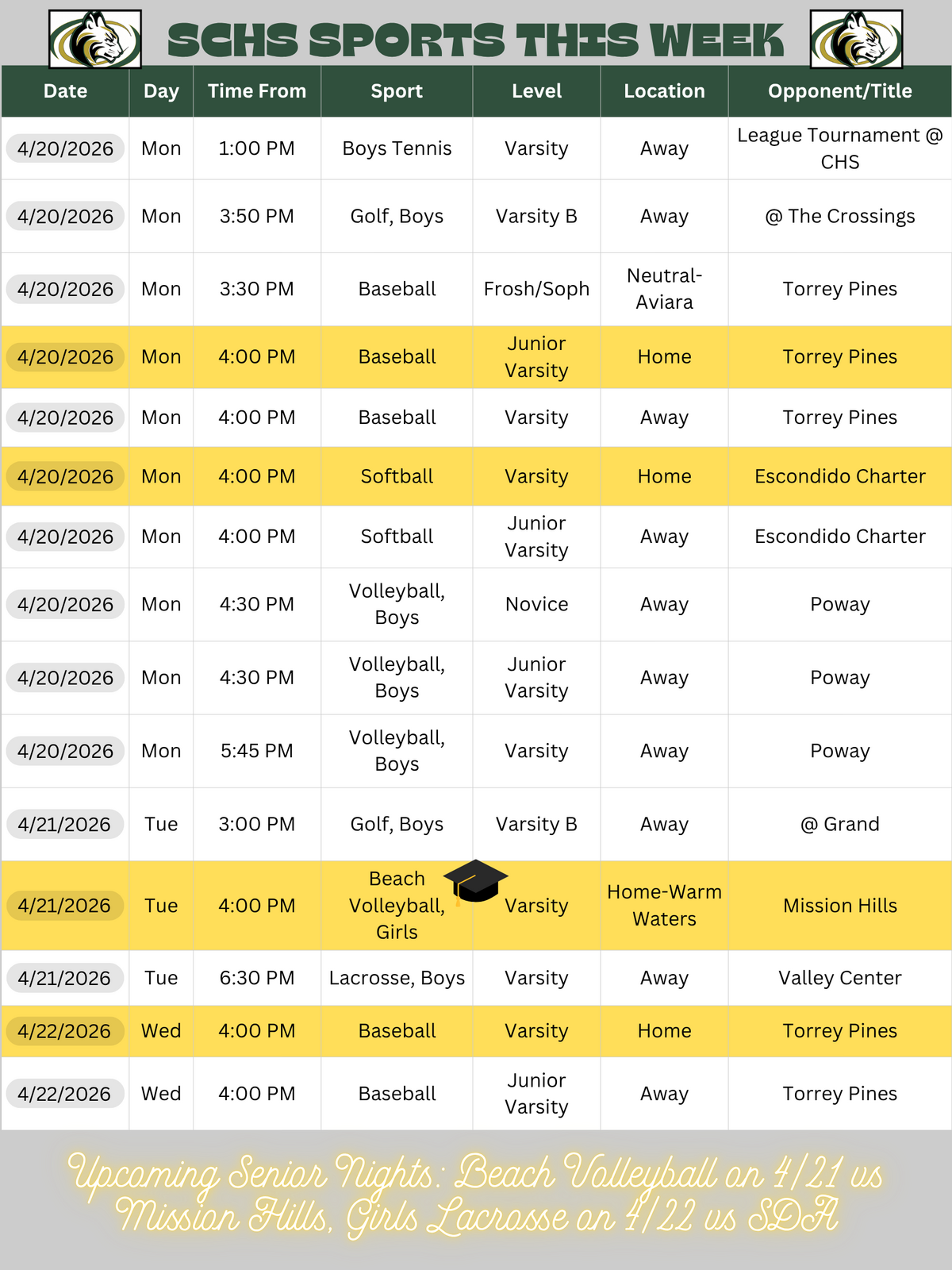 Upcoming Campus EventsElections for next year's Student Body Government are now open for voting for 9th-11th grade Students . You can vote by finding the QR code on any of the posters across campus...