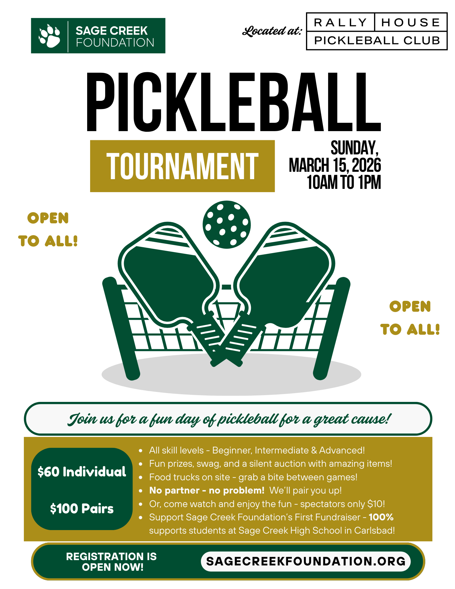 Inaugural Sage Creek Foundation Pickle Ball Tourney, March 15th